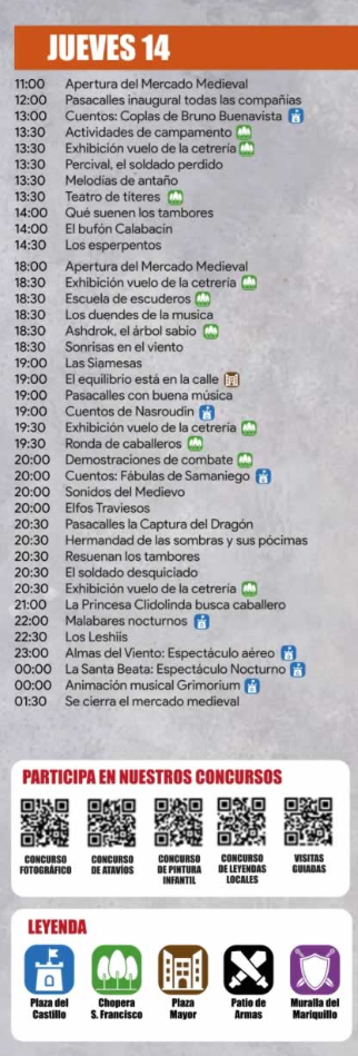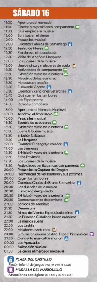 Durante todo el desarrollo del mercado tendrán lugar actuaciones y espectáculos de calle a carga de zancudos, trovadores, malabaristas, músicos, espectáculos de fuego, además de actividades infantiles y juegos populares.
